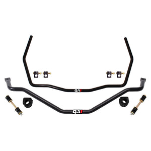 QA1's Mustang Front Sway Bars are manufactured from lightweight hollow-core (4130) Chromoly steel for maximum strength and durability. The CNC forming ensured precision fitment for a true bolt-on installation. They feature adjustable end links for fine tuning of the roll stiffness to your personal preference. A gloss black powder coated finish is applied for lasting durability and corrosion resistance. They also include greasable graphite polyurethane bushings and high quality plated hardware. QA1's Mustang Rear Sway Bars are manufactured from heavy duty solid-core(1045) cold formed steel for maximum strength. Precision CNC forming ensures proper fitment for a true bolt-on installation. These sway bars feature the same adjustable end links and gloss black powder coated finish. They include greaseable graphite polyurethane bushings, U-bolts and high quality plated hardware.