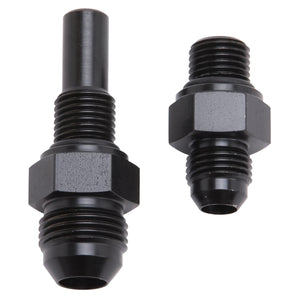 Russell's wide variety of lightweight aluminum adapter fittings allow for the connection of Russell hose ends to almost any component. Adapters are offered in standard thread, metric thread and pipe thread to fit most popular oil pumps, fuel pumps, fuel filters plus a variety of other common components. To compliment the looks of the hose installation, three finishes are available - ultra-bright Endura, traditional blue anodized or our new black anodized fittings.