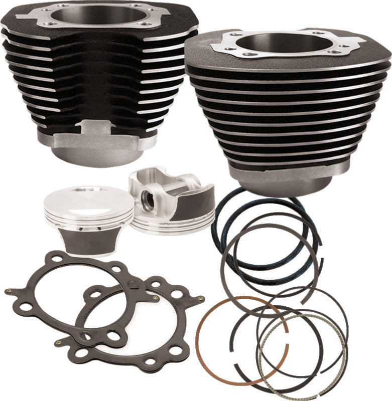 This bolt-on big bore cylinder and piston kit will increase the displacement from 96" or 103" to 106. It is as easy as a stock top end rebuild and requires no machining or flywheel rebalancing. For best performance, appropriate camshafts, performance air cleaner, performance exhaust and fuel system tuning are required.