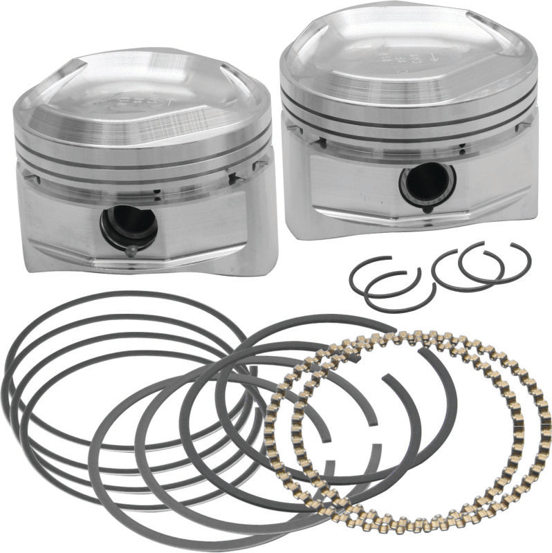 These forged pistons are designed for use in S&S big bore Hot Set Up Kits for HD Evolution big twin engines, and S&S 3-5/8" bore engines with S&S Super Stock cylinder heads and 4-1/4", 4-1/2" and 4-5/8" stroke engines with stock diameter (8-1/2") flywheels. 3-5/8" bore, standard size.
