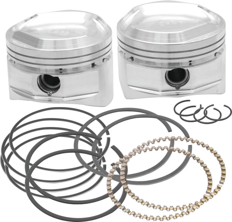 These forged pistons are designed for use in S&S big bore Hot Set Up Kits for HD Evolution big twin engines, and S&S 3-5/8" bore engines with S&S Super Stock cylinder heads and 4-1/4", 4-1/2" and 4-5/8" stroke engines with stock diameter (8-1/2") flywheels. 3-5/8" bore, standard size.