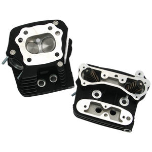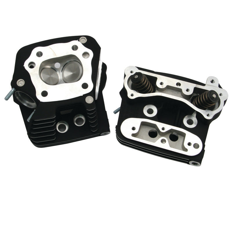 S&S® Performance Replacement cylinder heads for 1986-'99 HD® Evolution® big twin engines are designed to be compatible with a stock style flat topped piston. This set has a slightly larger 82cc combustion chamber making them idea for larger displacement applications, producing a managable compression ratio. These heads are original equipment on S&S® V96 and V80 engines. Larger than stock 1.900" intake and 1.575" exhaust valves provide plenty of air while maintaining port velocity for good low and midrange response. S&S® high lift valve springs allow the installation of cams with up to .585" lift. Compatible with stock intake manifolds, exhaust systems, and temperature sensors for EFI equipped models. Wrinkle black powder coat finish.