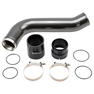 The 3.5" High Flow Passenger Side Intercooler Pipe for 2020 and Newer L5P Duramax replaces the factory plastic two piece pipe with a high flow, 14 ga. aluminum one piece 3.5" pipe. This part uses a CNC machined flange with a double o-ring seal and an upgraded silicone boot with black anodized billet aluminum adapter in order to withstand higher boost pressures than the factory components to increase reliability and eliminate blown factory boots and boost leaks. This pipe is compatible with stock trucks requiring no additional modifications, upgrades, or tuning for installation. Installation Instructions