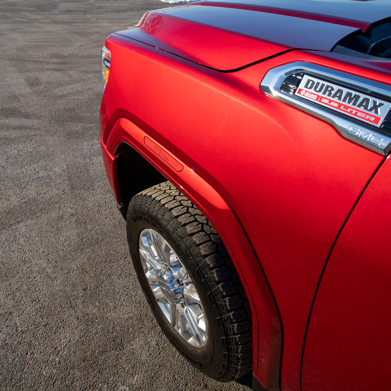 Clean up the look of your 2020-2025 GMC Sierra or Denali 2500 or 3500 HD truck by replacing the amber fender flare marker lights with these CAD Designed, CNC machined, billet aluminum marker light delete plates from WCFab. Available with machined WCFab logo or without in Raw Aluminum for paint matching or Fine Texture Black Powder Coat to blend into the OEM black plastic fender trim. Installs easily with basic hand tools. - - Replaces the following GM Part Numbers: 84806032 Installation Instructions