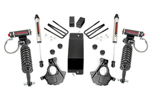 If youΓÇÖre looking for not-too-tall and not-too-small, Rough CountryΓÇÖs 3.5ΓÇ¥ Lifted Knuckle kit is the perfect option for increased ground clearance and aggressive good looks! This all-inclusive kit features everything you need for a stunning, new appearance and enhanced off-road action, with a host of features designed to promote an incredible suspension geometry and ride quality! Rough CountryΓÇÖs 3.5-inch kit features a set of lifted knuckles allowing you to lift your vehicle in the best possible way. Other kits only replace your upper control arms which can leave your CV boot prone to damage by making contact with the lower arms. Rough CountryΓÇÖs innovative, lifted knuckle design gives you plenty of clearance to keep your CV out of harmΓÇÖs way while promoting a better upper arm ball joint angle and better ride quality to boot. This kit includes Rough Country's premium V2 Monotube shocks! These 10-stage variable valving, high-pressure Nitrogen charged shocks offer a fantastic blend of off-road action and smooth highway ride quality. Also included in this kit are a set of fabricated rear blocks that are stronger and offer a longer lifespan than cast blocks while being less susceptible to damage and the environment.Includes a Lifetime Replacement Guarantee!