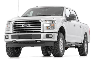 Rough Country's 3in Bolt-On Kit offers easy installation and aggressive good looks at an incredible value. Take your truck to new heights with this excellent option for 14 and up F-150 pickups.This kit features a set of high-quality, tubular Upper Control Arms designed to make alignment adjustments easier and durable rubber bushings. These arms are designed to promote a factory-like geometry by keeping the ball joint at optimum angles after lifting. This design allows for an improved, greater range of motion from the ball-joint, with less stress, wear and tear.Rough CountryΓÇÖs 3-inch Bolt-On Kit features Vertex coilovers and V2shocks, giving your truck incredible ride-quality both on and off-road. Also included are a set of fabricated rear blocks to provide lift height in the rear. Once installed, this kit gives your truck plenty of ride height for up to 34in tires while offering a clean, level look from front to rear. Retain your stock wheels with this kit when you use Rough CountryΓÇÖs 0.25-inch wheel spacer.This all-inclusive kit comes with everything you need, and installation is a piece of cake compared to other kits on the market! Featuring a 100% bolt-on installation process that requires zero cutting or drilling, this kit can be installed using common tools in a home garage, and allows the truck to be returned to stock at any time if so desired. Best of all this kit features Rough CountryΓÇÖs Lifetime Replacement Warranty.