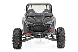 Light Up the Night. Rough Country's 30-inch LED Upper Windshield Kit for your Polaris RZR Turbo R gives you all the performance and durability that Rough Country is known for and provides plenty of light coverage for use on the trail or work site. This handy solution includes everything you need to upgrade your Polaris UTV with a 30-inch LED light bar in the perfect, forward-facing position for off-road illumination.\Incredible Illumination. Featuring 12,000 lumens and 150 watts of high-intensity CREE LED output, you can stay out on the trails long after the sun sets! These all-weather lights feature a durable, IP67 Waterproof, die-cast aluminum housing and include a premium wiring harness with a toggle switch and in-line fuse.\Installation and Warranty. Rough Country's 30-inch LED Upper Windshield Kit includes installation instructions and necessary hardware. In addition, this product is backed with a limited lifetime replacement warranty for manufacturer defects. As such, the product is protected from structural and workmanship damage after the date of purchase. With our industry-leading warranty, give yourself peace of mind when using Rough Country's products!