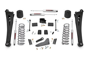 Compliment your Power Wagon's aggressive, good looks with Rough Country's new 4.5-inch Lift Kit with lifted coil springs. RAM Power WagonTrucks come with a wealth of impressive features right from the factory. Rough Country's 4.5-inch kit was engineered to retain these impressive factory specs while bumping up performance and durability where it's needed most. The result is a lifted beast with a mean profile and lush ride-quality that'll make other RAM owners wonder where you got yours from! When changing a vehicle's suspension the key to preserving ride quality is in keeping the geometry of all suspension components as close to their factory angles as possible. Rough Country's 4.5-inch Suspension kit features a set of ultra-durable Radius Arms, precision fit to bolt right into the factory mounts for an easier install and a more factory-like angle. These beefy, upgraded Radius Arms also feature a durable, durable rubber bushings for maximum vibration absorption. This kit also includes a set of front, lifted coil springs for unparalleled ride quality from your lifted Dodge Ram. This kit also includes Rough CountryΓÇÖs N3 Shock Absorbers. These 10-stage variable valving, high-pressure Nitrogen charged shocks offer a fantastic blend of off-road action and smooth highway ride quality. Each kit includes Rough CountryΓÇÖs Lifetime Replacement Guarantee!