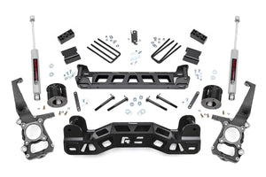 Give your 2WD Ford F-150 an aggressive new look and unparalleled off-road performance with Rough Country's 4-inch Suspension Lift. This all-inclusive kit features everything needed to take your Ford off the freeway and into the fields. Featuring a set of durable lifted knuckles and strut spacers, you'll gain enough ride height to run up to 33-inch tires! A 1/4-inch thick plate steel high clearance front and rear cross member bring uncompromised strength and good looks to your truck, featuring a laser-cut "RC" logo and an easy-to-install design. Our Fabricated Rear Blocks offer considerably more strength than their cast iron counterparts, and were specifically engineered by Rough Country to prevent against axle-wrap. A set of Rough Country's premiere off-road shock absorbers are also included in this kit. No cutting or drilling required to install, and best of all this kit is backed by Rough Country's Lifetime Replacement Warranty!