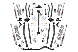 Achieve the ultimate flex and articulation while retaining a smooth highway ride quality with Rough Country's 4-inch Long Arm Suspension Lift Kit. This true 4-link setup offers incredible off-road performance while keeping the suspension geometry as close to the factory angles as possible. The result is a more capable suspension setup that can deliver jaw-dropping rock crawling performance while still giving the soft, lush highway ride quality a daily driver would enjoy. Rough CountryΓÇÖs 4-inch Long Arm Suspension Kit boasts an easier install process than most long arm kits, with no welding and no removal of the factory crossmember required for installation. Each JL Long Arm Kit features custom engineered dual-rate coils that provide two distinctly different levels of compression allowing you to tackle any obstacle with ease. The 4-link setup includes a full set of front and rear upper and lower adjustable control arms giving you full control to adjust the wheelbase and pinion angle. Each arm features Rough CountryΓÇÖs adjustable flex joints with durable rubber bushings and is constructed out of durable heavy-wall DOM tubing for a long lifespan of flex and performance. All brackets are made of a thick 1/4-inch thick high tensile strength plate steel. Includes a Lifetime Replacement Guarantee!