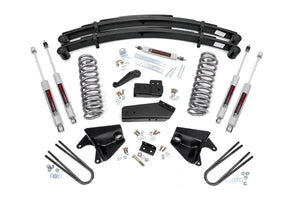 Give your 80-96 Ford Bronco an aggressive look from front to rear with Rough CountryΓÇÖs 4" Ford Suspension Lift Kit! This easy-to-install leveling kit raises the front of your vehicle to be equal height with the rear for a leveled, flush look that gives a better ride height and more aggressive appearance. This kit features a set of front, durable coil springs and rear leaf springs allowing you gain additional ride height without sacrificing ride quality or performance. A set of radius arm and I-Beam drop brackets are provided to keep everything at optimum angles for a factory-like ride, even after lifting. Our fabricated rear blocks offer considerably more strength than their cast iron counterparts. A set of Rough Country's premium N3 shocks are also included in this kit. These fine tuned 10-stage variable high-pressure Nitrogen charged shocks offer a fantastic blend of off-road action and smooth highway ride quality. With a durable 18mm spring-loaded piston rod and faster-cooling 54mm shock body. Get the wheels you want! Rough Country's 4" Ford Suspension Lift Kit comes with everything you need to fit up to a 33x12.5" tire with proper wheel backspacing. Best of all, Rough Country's 4" Ford Suspension Lift Kit is backed by our Lifetime Replacement Warranty.