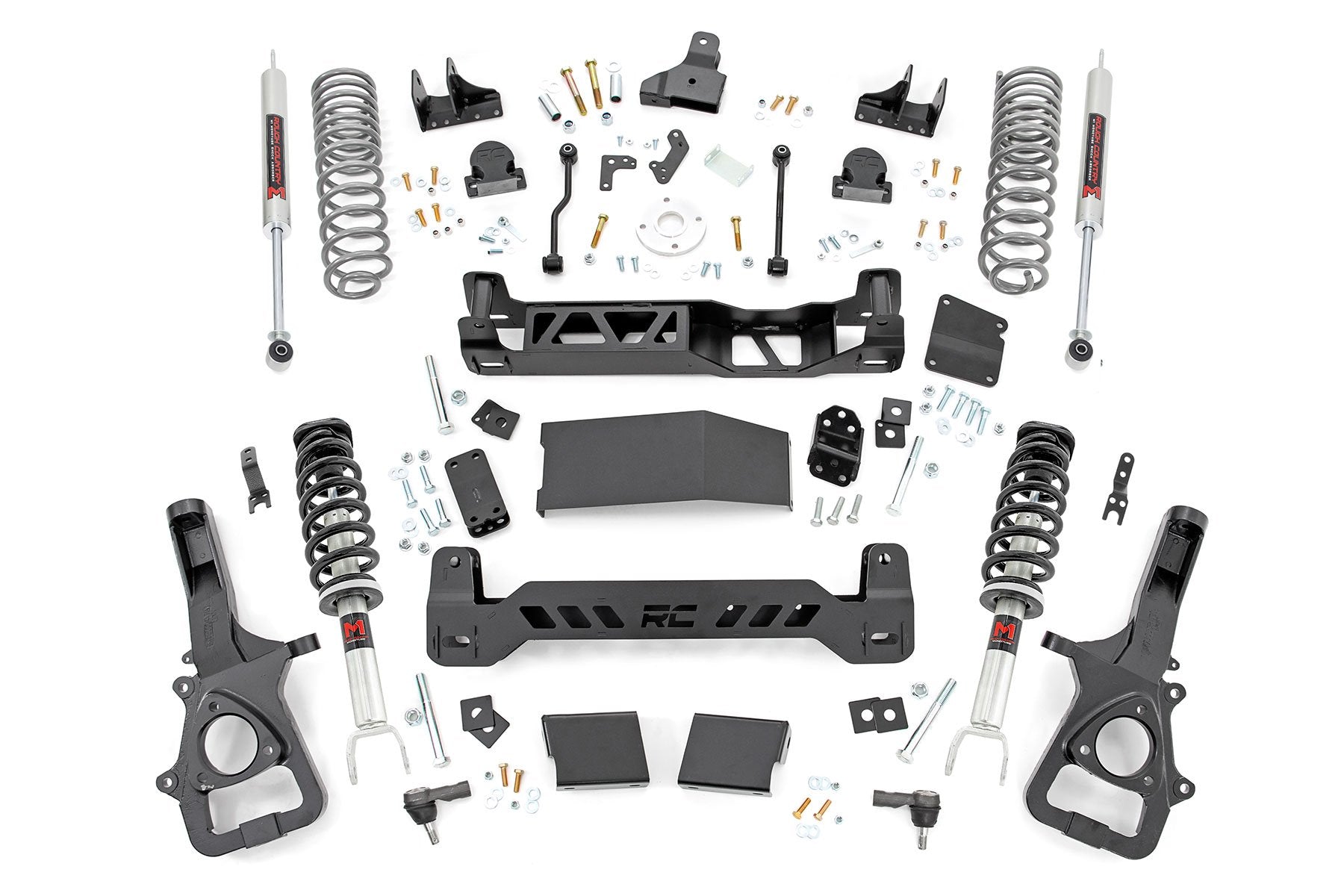 Transform your 5th generation RAM 1500 into an absolute BEAST with Rough CountryΓÇÖs 6in Suspension Lift Kit. This all-inclusive kit comes with everything you need to give your truck an aggressive look and a formidable stance that complements the revamped design and upgraded look of this rugged vehicle. Rough CountryΓÇÖs 6in Suspension Lift gives you plenty of increased ground clearance for off-road action and enough additional ride height to run up to 37in tires for a head-turning look thatΓÇÖs sure to command attention.Each kit features a set of high-quality front and rear crossmembers with a laser-cut RC logo, giving the truck a fierce, but streamlined look after lifting. For true trailblazers, this kit also ships with a set of rear N3 Nitrogen-charged shock absorbers - valved specifically for a blend of on and off-road performance. This kit also includes an upgraded outer tie-rod thatΓÇÖs engineered to optimize turning and minimize bump steer while allowing you to fit a wider variety of wheels.Best of all? You'll achieve better performance, bigger tires, and considerable protection all without sacrificing the look of your truck. All components are specifically designed to keep things nice and tidy underneath, utilizing drop brackets to promote proper geometry and leaving nothing hanging out in plain sight. Includes Rough CountryΓÇÖs Lifetime Replacement Guarantee.