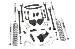 Compliment your 08-10 Ford F-250/350's aggressive, good looks with Rough Country's 4-Link Suspension Lift System. Rough Country's 8-inch Lift Kit was engineered to retain the F-250/350's impressive factory specs while bumping up performance and durability where it's needed most. The result is an aggressive, lifted beast with a mean profile and balanced on and off-road ride quality. When changing a vehicle's suspension, the key to preserving ride quality is in keeping the geometry of all suspension components as close to their factory angles as possible. Rough Country's 4-Link Suspension Lift System features a set of ultra-durable radius arm drop brackets, precision fit to bolt right into the factory mounts for an easier install and a more factory-like angle. This all-inclusive kit also features an adjustable lower control arms at the axle to allow caster adjustment as well as a track bar relocation bracket and a drop pitman arm. A full set of N3 Shocks provide a truly balanced ride quality for on and off-road use - prefect for daily drivers. This kit also ships with a set of durable, lifted coil springs and brake line relocation brackets. This innovative kit design features a 100% bolt-on installation process that is lightning fast compared to other kits this size. Save time and money with no need for cutting, drilling, or other complicated procedures. Rough Country's Rough Country's 4-Link Suspension Lift System is backed by our Lifetime Replacement Warranty.