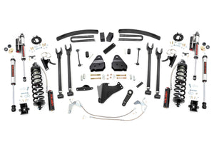 Superior Ride Quality. Give your second-generation Ford Super Duty an impressive upgrade and incredible ride quality with Rough CountryΓÇÖs 4-Link Coilover Conversion Lift Kit! This must-have kit is the pinnacle of suspension upgrades. Providing ride height adjustability, increased dampening, and killer good looks. You're sure to set yourself apart from the pack. This innovative kit allows you to replace your factory arms with a 4-Link setup, using Rough CountryΓÇÖs durable, fixed upper arms and adjustable lower control arms. A set of radius arm drop brackets maintain proper geometry and allow for proper caster setting, which is crucial to maintaining factory handling.\Durable Components. Rough CountryΓÇÖs 6" 4-Link Coilover Conversion Lift Kit features top-mounted reservoir brackets and coil-over mounts constructed from 1/4-inch steel. Utilizing this conversion kit you're removing the factory independent coil shock and coil set-up and replacing it with a massive 2.5in piston, nitrogen-charged, 8-stage adjustable Vertex Coilover. Rough CountryΓÇÖs Vertex Coilovers feature a monotube design with an external reservoir for increased oil capacity and damping sensitivity. When it comes to investing in a high-end kit, youΓÇÖll be pleased to find that Rough CountryΓÇÖs 2.5in piston design is beefier and offers an impressive 56% greater fluid capacity than the average reservoir shock. Each kit is paired with a monotube shock that provides optimal damping control.\Installation. Requiring cutting and drilling to install, an estimated timeframe of 6-10 hours is recommended to complete this full installation. This full kit can be installed at home and can be completed efficiently and quickly!\Limited Lifetime Replacement Warranty. Rough CountryΓÇÖs 4-Link Coilover Conversion Lift Kit is backed with a limited lifetime replacement warranty towards manufacturer defects. As such, the product is protected from structural and workmanship damage after the date of purchase. With our industry-leading warranty give yourself peace of mind when using Rough Country's Suspension products!