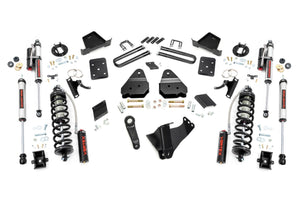 Explore New Heights. Give your third-generation Ford Super Duty superior lift height with Rough Country's 6-inch Coilover Suspension Lift Kit! This all-inclusive kit comes with everything you need for a total transformation of your truck. Run up to 37in tires while preserving the smooth, factory ride quality with this impressive upgrade.\Durable Components. When changing a vehicle's suspension, the key to preserving ride quality is keeping the geometry of all suspension components as close to their factory angles as possible. Rough Country's new 6-inch Suspension Lift features a set of ultra-durable radius arm drop brackets, precision fit to bolt right into the factory mounts for an easier install and a more factory-like angle. Utilizing this conversion kit you're removing the factory independent coil shock and coil set-up and replacing it with a massive 2.5in piston, nitrogen-charged, 8-stage adjustable Vertex Coilover. Rough CountryΓÇÖs Vertex Coilovers feature a monotube design with an external reservoir for increased oil capacity and damping sensitivity. When it comes to investing in a high-end kit, youΓÇÖll be pleased to find that Rough CountryΓÇÖs 2.5in piston design is beefier and offers an impressive 56% greater fluid capacity than the average reservoir shock. Each kit is paired with a monotube shock that provides optimal damping control.\Installation. Requiring cutting and drilling to install, an estimated timeframe of 6-10 hours is recommended to complete this full installation. This full kit can be installed at home and can be completed efficiently and quickly!\Limited Lifetime Replacement Warranty. Rough Country's 6-inch Coilover Suspension Lift Kit is backed with a limited lifetime replacement warranty towards manufacturer defects. As such, the product is protected from structural and workmanship damage after the date of purchase. With our industry-leading warranty give yourself peace of mind when using Rough Country's Suspension products!