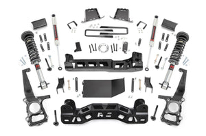 Give your 2014 Ford F-150 an aggressive new look and unparalleled off-road performance with Rough Country's 6-inch Suspension Lift. This all-inclusive kit features everything needed to take your Ford off the freeway and into the fields. Featuring a set of durable lifted knuckles and strut spacers, you'll gain enough ride height to run up to 35" tires! A set of differential drop brackets, sway-bar drop brackets, brake line brackets, and a drive shaft spacer help keep everything at an optimum angle for a factory-like ride, even after lifting. A 1/4-inch thick plate steel front and rear cross member bring uncompromised strength and good looks to your truck, featuring a laser-cut "RCX" logo and an easy-to-install design. Our Fabricated Rear Blocks offer considerably more strength than their cast iron counterparts, and were specifically engineered by Rough Country to prevent against axle-wrap. A set of Rough Country's premiere off-road shock absorbers - Performance 2.2's - are also included in this kit, featuring a large 2.2-inch diameter body with a chrome-hardened piston rod and long-lasting polyurethane bushings.