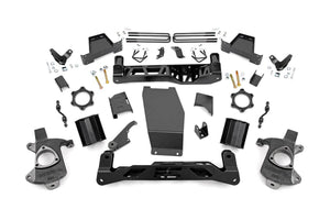 Get the look you really want with Rough Country's 6-inch Suspension Kit for GMC Sierra Denali 1500 Pickups equipped with Magnetic Ride Control. This massive kit affords your truck the ability to run 33-inch tires on factory wheels with our beefy lifted knuckles and is designed with 100% laser-cut materials for the best possible fit on your vehicle. Includes a set of front and rear high-clearance crossmembers featuring the "RC" logo and a differential skid-plate. Each kit also comes with a set of durable, fabricated lift blocks that are stronger and offer a longer lifespan than cast blocks. Give your pickup an aggressive, lifted and level stance with incredible ride quality! Our innovative Lifted Knuckle design boosts ride height while keeping all components at the optimum angles for a factory-like ride. Includes Rough Country's Lifetime Replacement Warranty.