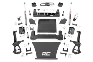 Explore New Heights. With the rise of the new generation, Chevy decided that it was time to redesign one of their most beloved trucks and tap into some familiar technology by utilizing rear composite leaf springs. Chevy's fourth generation 1500 features an impressive all-new design thatΓÇÖs built from the ground up, with aggressive angles and head-turning stylings that fit in beautifully when transformed with Rough CountryΓÇÖs 6-inch Suspension Lift.\Innovative Design and Construction. When changing a vehicle's suspension, the key to preserving ride quality is keeping the geometry of all suspension components as close to their factory angles as possible. With Rough Country's six-inch lift kit specifically designed for the rear mono-leaf equipped models, you can rest easy knowing that everything is included for installation. This suspension kit combines the use of durable steel knuckles, differential brackets, and drop cross members to reduce cv angles and simulate factory angles all while achieving new heights. Featuring a set of upper strut spacers that offer uncompromised strength and rigidity, gaining lift height is no issue. Completing the rear of this suspension kit is a set of rear blocks, shocks, and u-bolts that allow you to retain factory-like geometry. This combined setup provides enough clearance to run 35" tires without additional modifications. We didn't want to limit you to one standard kit. Rough Country's 6-inch kit is configurable with all the shock options that we offer. This allows you to choose which shock series you want! Ranging from our nitrogen-charged N3 shocks to our Vertex reservoir shocks the power to choose is in your hands.\Installation. With minor cutting and a strut compressor required to install, an estimated timeframe of 8-10 hours is recommended to complete this full installation. This full kit can be installed at home and can be completed efficiently and quickly!\Limited Lifetime Replacement Warranty. Rough Country's 6" Suspension Lift Kit is backed with a limited lifetime replacement warranty towards manufacturer defects. As such, the product is protected from structural and workmanship damage after the date of purchase. With our industry-leading warranty give yourself peace of mind when using Rough Country's Suspension products!