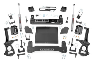 Explore New Heights. With the rise of the new generation, Chevy decided that it was time to redesign one of their most beloved trucks and tap into some familiar technology by utilizing rear composite leaf springs. Chevy's fourth generation 1500 features an impressive all-new design thatΓÇÖs built from the ground up, with aggressive angles and head-turning stylings that fit in beautifully when transformed with Rough CountryΓÇÖs 6-inch Suspension Lift.\Innovative Design and Construction. When changing a vehicle's suspension, the key to preserving ride quality is keeping the geometry of all suspension components as close to their factory angles as possible. With Rough Country's six-inch lift kit specifically designed for the rear mono-leaf equipped models, you can rest easy knowing that everything is included for installation. This suspension kit combines the use of durable steel knuckles, differential brackets, and drop cross members to reduce cv angles and simulate factory angles all while achieving new heights. Featuring a set of upper strut spacers that offer uncompromised strength and rigidity, gaining lift height is no issue. Completing the rear of this suspension kit is a set of rear blocks, shocks, and u-bolts that allow you to retain factory-like geometry. This combined setup provides enough clearance to run 35" tires without additional modifications. We didn't want to limit you to one standard kit. Rough Country's 6-inch kit is configurable with all the shock options that we offer. This allows you to choose which shock series you want! Ranging from our nitrogen-charged N3 shocks to our Vertex reservoir shocks the power to choose is in your hands.\Installation. With minor cutting and a strut compressor required to install, an estimated timeframe of 8-10 hours is recommended to complete this full installation. This full kit can be installed at home and can be completed efficiently and quickly!\Limited Lifetime Replacement Warranty. Rough Country's 6" Suspension Lift Kit is backed with a limited lifetime replacement warranty towards manufacturer defects. As such, the product is protected from structural and workmanship damage after the date of purchase. With our industry-leading warranty give yourself peace of mind when using Rough Country's Suspension products!