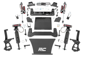 Chevy's 2019 1500 features an impressive all-new design thatΓÇÖs built from the ground up, with aggressive angles and head-turning stylings that fit in beautifully when transformed with Rough CountryΓÇÖs 6in Suspension Lift. This kit lifts and levels your vehicle for a commanding stance and enough clearance to run 35x12.50 tires on 10in wide wheels. Rough Country has engineered this kit to provide optimal suspension geometry while retaining the factory ride quality, giving you enhanced off-road capabilities without sacrificing the handling and smooth ride that makes this truck so impressive. Rough CountryΓÇÖs 6in Suspension lift retains the stock track width, allowing for up to a 10in wide wheel with 4.5in backspacing. Each kit includes front and rear crossmembers and a skid plate for enhanced chassis strength as well as cast steel knuckles for incredible durability and performance. Includes Rough CountryΓÇÖs Lifetime Replacement Guarantee!