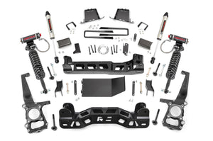 Give your '11 - '13 Ford F-150 an aggressive new look and unparalleled off-road performance with Rough Country's 6-inch Suspension Lift. This all-inclusive kit features everything needed to take your Ford off the freeway and into the fields. Featuring a set of durable lifted knuckles and N3 lifted struts, you'll gain enough ride height to run up to 35-inch tires! A set of differential drop brackets, sway-bar drop brackets, brake line brackets, and a drive shaft spacer help keep everything at an optimum angle for a factory-like ride, even after lifting. A 1/4-inch thick plate steel front and rear cross member bring uncompromised strength and good looks to your truck, featuring a laser-cut "RC" logo and an easy-to-install design. Our 4-inch Fabricated Rear Blocks offer considerably more strength than their cast iron counterparts, and were specifically engineered by Rough Country to prevent against axle-wrap. A set of Rough Country's premiere off-road shock absorbers - N3 - are also included in this kit, featuring a large diameter body with a chrome-hardened piston rod and long-lasting polyurethane bushings.