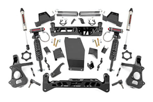 Get the look you really want with Rough Country's 7-inch Suspension Kit for 4WD '14+ Chevy / GMC 1500 Pickups. This massive kit affords your truck the ability to run 35-inch tires on factory wheels with our beefy lifted knuckles and is designed with 100% laser-cut materials for the best possible fit on your vehicle. Includes a set of front and rear high-clearance cross members featuring the "RC" logo and a differential skid-plate. Each kit also comes with a set of durable, fabricated anti-wrap lift blocks that offer a huge boost while helping prevent axle wrap issues. Give your pickup an aggressive, lifted and level stance with incredible ride quality! Our innovative Lifted Knuckle design boosts ride height while keeping all components at the optimum angles for a factory-like ride. This kit includes a set of rear V2 Monotube Shocks, engineered for on and off-road use. Includes Rough Country's Lifetime Replacement Warranty.