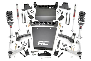Superior Lift Solution. Looking to add some serious attitude to your 2016-2018 GM 1500? Rough Country's 7-Inch Lift Kit is just what you need. This lift kit gives your gm a meaner, lifted, and level stance while providing a smooth ride for unmatched highway and trail performance. It also adds room for larger wheels and tires, so you can make your truck stand out from the crowd. With excellent ride quality and handling characteristics on the road, this lift kit is the perfect way to take your GM to the next level. Innovative Design and Construction. When changing a vehicle's suspension, the key to preserving ride quality is keeping the geometry of all suspension components as close to their factory angles as possible.This suspension kit combines the use of durable control arm brackets, differential brackets, and drop cross members to reduce cv angles and simulate factory angles all while achieving new heights. Featuring a set of upper strut spacers that offer uncompromised strength and rigidity, gaining lift height is no issue. Completing the rear of this suspension kit is a set of rear blocks, shocks, and u-bolts that allow you to retain factory-like geometry. This combined setup provides enough clearance to run 35" tires without additional modifications. We didn't want to limit you to one standard kit. Rough Country's 7-inch kit is configurable with all the shock options that we offer. This allows you to choose which shock series you want! Ranging from our nitrogen-charged N3 shocks to our Vertex reservoir shocks the power to choose is in your hands. Our 7-inch kit features a set of high-quality, Forged Aluminum Upper Control Arms designed to make alignment adjustments easier and durable rubber bushings. These arms are designed to promote a factory-like geometry by keeping the ball joint at optimum angles after lifting. This design allows for an improved, greater range of motion from the ball joint, with less stress, wear and tear. Installation. Requiring cutting and grinding required to install, an estimated timeframe of 8-10 hours is recommended to complete this full installation. This full kit can be installed at home and can be completed efficiently and quickly! Limited Lifetime Replacement Warranty. Rough Country's 6" Suspension Lift Kit is backed with a limited lifetime replacement warranty towards manufacturer defects. As such, the product is protected from structural and workmanship damage after the date of purchase. With our industry-leading warranty give yourself peace of mind when using Rough Country's Suspension products!