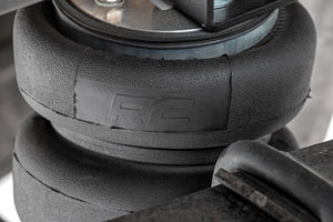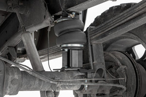 Ideal Leveling. Is your truck your workhorse? The main attraction to the pick-up line is the accessibility to haul and tow as desired. However, due to the amount of weight in the bed, or the condition of the vehicle's rear leaf springs, this can cause the vehicle to be un-level when under load. Here at Rough Country, we created an innovative new product to ensure that these are troubles of the past. Introducing, Rough Country's Rear Air Spring Kit.Heavy-duty Construction. Rough Country's Rear Air Spring Kit features two RC branded high-quality double convoluted airbags complemented with DOT-approved airlines. Whether you plan on towing or hauling in the not-so-distant future Rough Country's Air Spring kit is the must-have accessory to ensure that your trailer is level reducing the weight off of the tongue of your trailer.  Each kit offers 1/4" push connector fittings and all of the bracketry needed to ensure installation is lightning fast and secure! Rough Country's Air Spring kit provides up to 5,000 lbs of load support to ensure that you experience less sway and bottoming out when braking and steering! \Installation. With an estimated timeframe of 1-2 hours this full kit can be installed at home using standard tools and can be completed efficiently and quickly!\Limited Lifetime Replacement Warranty. Rough Country's Rear Air Spring Kit is backed with a limited lifetime replacement warranty towards manufacturer defects. As such, the product is protected from structural and workmanship damage after the date of purchase. With our industry-leading warranty give yourself peace of mind when using Rough Country's Suspension products!