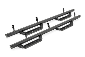 Durable, aggressive, and with a tight-fitting tube that hugs the body of your truck for the ultimate, clean look - Rough Country’s AL2 Drop Steps help set your truck apart from the pack. These 100% aluminum-constructed steps offer a long lifespan of corrosion resistance in off-road environments. The fully welded, 1-piece design offers unsurpassed strength and is easy to install!\The drop steps feature a louvered design that makes it easy to secure your footing in any condition, while the wide step profile offers plenty of room to plant your foot and looks fantastic on any lifted truck. Upgrade your truck with Rough Country’s AL2 Steps and you’ll feel the difference every time you climb into the cab.