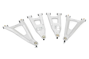 Unlock the full potential of your UTV with Rough Country’s Forged Aluminum Control Arms for the Polaris Ranger. Stock vehicles are limited to tire height increases due to front tire-to-body contact. Our Forward Offset Control Arms eliminate those limitations and allow for up to a 30” tire with no lift required!\2” Forward Offset: By moving your front wheels 2” forward, you gain the clearance needed for up to 30” tires, with no lift kit required. Extending the wheelbase 2” also improves approach angles and provides enhanced stability and control over challenging terrains. But if you're craving an even higher stance, this control arm can be seamlessly combined with a lift kit for additional tire clearance.\Built Tough: Rough Country's Control Arms are crafted from tough forged aluminum, making them lightweight and stronger than regular tubular arms.\All-in-one Solution: With our all-in-one design, you won't need additional components such as extended tie-rods, extra steering stops, or adjustable blocks.\Easy Installation: Rough Country’s Forged Aluminum 2” Forward Offset High Clearance Control Arms won’t install themselves, but they’re about as close as you can get.  Complete with pre-installed greaseable Heavy Duty Ball Joints and long-life rubber bushings, installation is as simple and straightforward as it gets.\With Rough Country's Forged Aluminum Control Arms, you'll gain more clearance and unbeatable durability. Upgrade your Polaris Ranger today and experience the Rough Country difference.