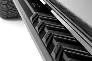 Ease of Access. Gain easier access to your cab with Rough Country's BA2 Running Board Side Steps. These high-quality replacements are a must-have for any lifted application. Offering a robust design and ample stepping area, your footing has never been safer.\Durable Construction. Rough Country's BA2 Running Board Steps feature a comfortable, 5-inch wide stepping area with an integrated insert design that ensures foot placement when climbing in and out of your vehicle. Each running board features a durable powder-coated finish and a nonslip design that can support up to 500lbs!\Installation. With no cutting or drilling required to install, installation couldn't be easier. With an estimated timeframe of 1-2 hours this full kit can be installed at home using standard tools and can be completed efficiently and quickly!\5-Year Replacement Warranty. Rough Country's BA2 Running Board Side Steps is backed with a five-year replacement warranty towards manufacturer defects. As such, the product is protected from structural and workmanship damage after the date of purchase. With our industry-leading warranty give yourself peace of mind when using Rough Country's Suspension products!