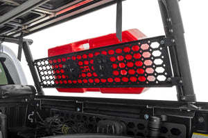 Organize your gear. The Rough Country Toyota Tacoma Bed Rack Molle Panel offers numerous benefits to Toyota owners. Say goodbye to cluttered and disorganized truck beds and take advantage of unlimited accessory attachment options that allow you to make the most of your bed space. Keep your gear secure, easily accessible and neatly stored.\A Perfect Fit. This 14GA steel panel is designed specifically for the third generation Toyota Tacoma Bed Rack, ensuring a seamless fit and easy installation. Our Molle Panels are laser cut and welded to seamlessly fit your Bed Rack. They feature a durable powder coat finish that adds an extra layer of protection, ensuring that this product will last for years. Upgrade your truck bed with the Rough Country Toyota Tacoma Bed Rack Molle Panel.