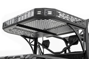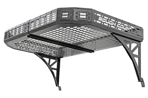 Overland adventures require bringing plenty of gear along for the ride. Ensure that your Can-Am Defender has plenty of cargo space by installing Rough Country's rear cargo rack kit. This rock-solid rack design can provide storage to haul all of your gear without sacrificing your bed's space or dumping capabilities. Rough Country's cargo rack kit is constructed from heavy-duty steel and features a laser-cut mesh pattern that provides plenty of mounting points to secure your load. Since adventure doesn't end when the sun goes down, four flush mount led lights are an available option. Installation is easy; all needed hardware is included and only requires some minor drilling. The kit, coated in a durable black powder coat finish, will give you years of protection to the harshest elements.