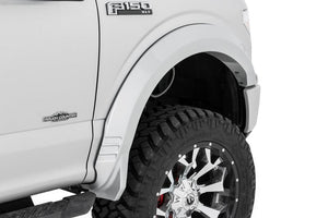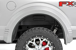 Rough Country's SF1 Fender Flares help you get the tough-looking finishing touch that your build deserves with a one-of-a-kind design. These flares complement the truck's body lines offering a clean look that will turn heads. The SF1 flare design gives the perfect amount of additional tire coverage for an oversized wheel and tire package and feature an integrated rear "mud catcher" to help reduce tire sling down the truck side. They are easy to install on your F-150, with excellent fitment right out of the box and includes all necessary hardware. The construction of these flares is from a durable ABS material that is both UV resistant for an uncoated install or paint-ready for a custom color match look.