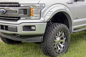 Rough Country's SF1 Fender Flares help you get the tough-looking finishing touch that your build deserves with a one-of-a-kind design. These flares complement the truck's body lines offering a clean look that will turn heads. The SF1 flare design gives the perfect amount of additional tire coverage for an oversized wheel and tire package and feature an integrated rear "mud catcher" to help reduce tire sling down the truck side. They are easy to install on your F-150, with excellent fitment right out of the box and includes all necessary hardware. The construction of these flares is from a durable ABS material that is both UV resistant for an uncoated install or paint-ready for a custom color match look.
