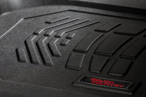 Keeping your ride spotless isn't always easy, especially with the unpredictable weather and accidental spills. Now you can ditch the dirt and keep your ride clean with Rough CountryΓÇÖs Sure-Fit Floor Mats!\All-Weather Protection: Our Sure-Fit Floor Mats are built to conquer any mess, from snow and mud to sand, salt water, and even that mystery puddle you're too afraid to touch. Spilled coffee? Don't sweat it! These mats feature a raised lip design that traps spills before they can reach your carpet. Plus, the textured surface keeps your feet firmly planted (no matter how messy things get).\\Sure-Fit Design: Made from tough Thermoplastic Rubber, these mats can handle anything you throw at them. They're flexible enough to contour perfectly to your Chevy or GMC's floor, but strong enough to withstand even the most extreme temperatures. And the best part? They're custom-designed for your ride, so you get a perfect fit with extra coverage, whether you're rocking bucket or bench seats.\\Installation is a Breeze: Simply swap out your old mats and put ours in place. And they're just as easy to remove for cleaning, whether you're hitting them with the hose or giving them a quick vacuum. Made with pride in the USA using high-quality materials, they're built to withstand the test of time. And to show we stand behind our product, we offer a Limited Lifetime Warranty, so you can drive with confidence knowing your investment is protected.\\With Rough CountryΓÇÖs Sure Fit Floor Mats you get the perfect combination of style, durability, and peace of mind, knowing your vehicle's floors are protected no matter where the road takes you. Life is messy, but your truck doesn't have to be.