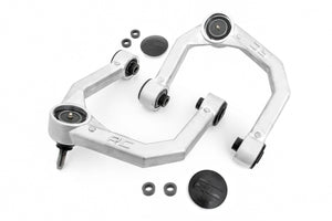 Take your truck to the next level with Rough CountryΓÇÖs most durable Upper Control Arm to date! Rough CountryΓÇÖs Forged Upper Control Arms feature a solid, 1-piece design made of forged aluminum for superior strength and durability. This forged design outperforms all other types of arm construction, with no welding weak spots that could bend or break. Rough CountryΓÇÖs Forged Upper Control Arms feature POM ball joints for a greater range of motion offering more wheel articulation than standard or OE replacements. These ball joints feature a Polyoxymethylene ball race with an extremely low coefficient of friction for longer life, and a larger ball diameter to improve range of motion with a maintenance-free design. Each ball joint is fully greaseable. Rough CountryΓÇÖs Forged Upper Control Arms also feature durable rubber bushings rubber bushings for superior quality and durability.