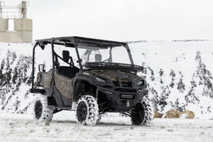 Easy Access. Overland adventures require bringing plenty of gear along for the ride. Ensure that your Honda Pioneer has plenty of cargo space by installing Rough Country's Front Cargo Rack Kit. This rock-solid rack design can provide storage to haul all of your gear without sacrificing your cab, or bed space!\Durable Construction. Rough Country's cargo rack kit is constructed from heavy-duty steel and features a laser-cut mesh pattern that provides plenty of mounting points to secure your load. Since adventure doesn't end when the sun goes down, this kit includes a 6" slimline LED light bar. Whether youΓÇÖre off the beaten path at sunset or gathering all your gear before dawn, youΓÇÖll be glad to have access to additional lighting power to tackle the task at hand. Rough CountryΓÇÖs all-weather LED lights feature a durable, IP67 Waterproof, die-cast aluminum housing and include a premium wiring harness with a toggle switch.\Installation. With minor drilling required for installation, an estimated timeframe of 3-4 hours is recommended to complete this full installation. This full kit can be installed at home and can be completed efficiently and quickly!\Limited Lifetime Replacement Warranty. Rough CountryΓÇÖs Front Cargo Rack is backed with a limited lifetime replacement warranty towards manufacturer defects. As such, the product is protected from structural and workmanship damage after the date of purchase. With our industry-leading warranty give yourself peace of mind when using Rough Country's Suspension products!