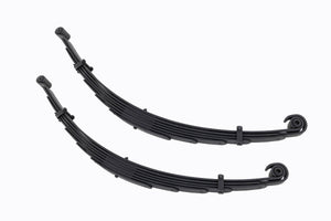 Added Lift Height and Ride Comfort. Take your suspension kit to the next level with Rough Country's Replacement Leaf Springs. Constructed from high-quality materials and designed specifically for the weight of your vehicle. This enhanced replacement spring will provide a factory-like feel while retaining your suspension lift height. \Durable and Off-Road Ready. Rough Country's Replacement Leaf Springs are designed to tackle any terrain that they are faced with. Featuring a multi-leaf design and spring pads this reduces the friction and maximizes comfort. Each leaf pack utilizes tapered leaves for improved flexibility at their ends. \Installation. Rough Country's Replacement Leaf Springs offer a 100% bolt-on installation estimated to take approximately 1-2 hours depending on vehicle condition. Simply remove the pre-existing leaf spring and use the stock hardware to equip your vehicle with this high-quality replacement. \Lifetime Replacement Warranty. Rough Country's Replacement Leaf is backed with a 5-year replacement warranty towards manufacturer defects. As such, the product is protected from structural and workmanship damage after the date of purchase. With our industry-leading warranty give yourself peace of mind when using Rough Country's Suspension products!