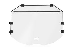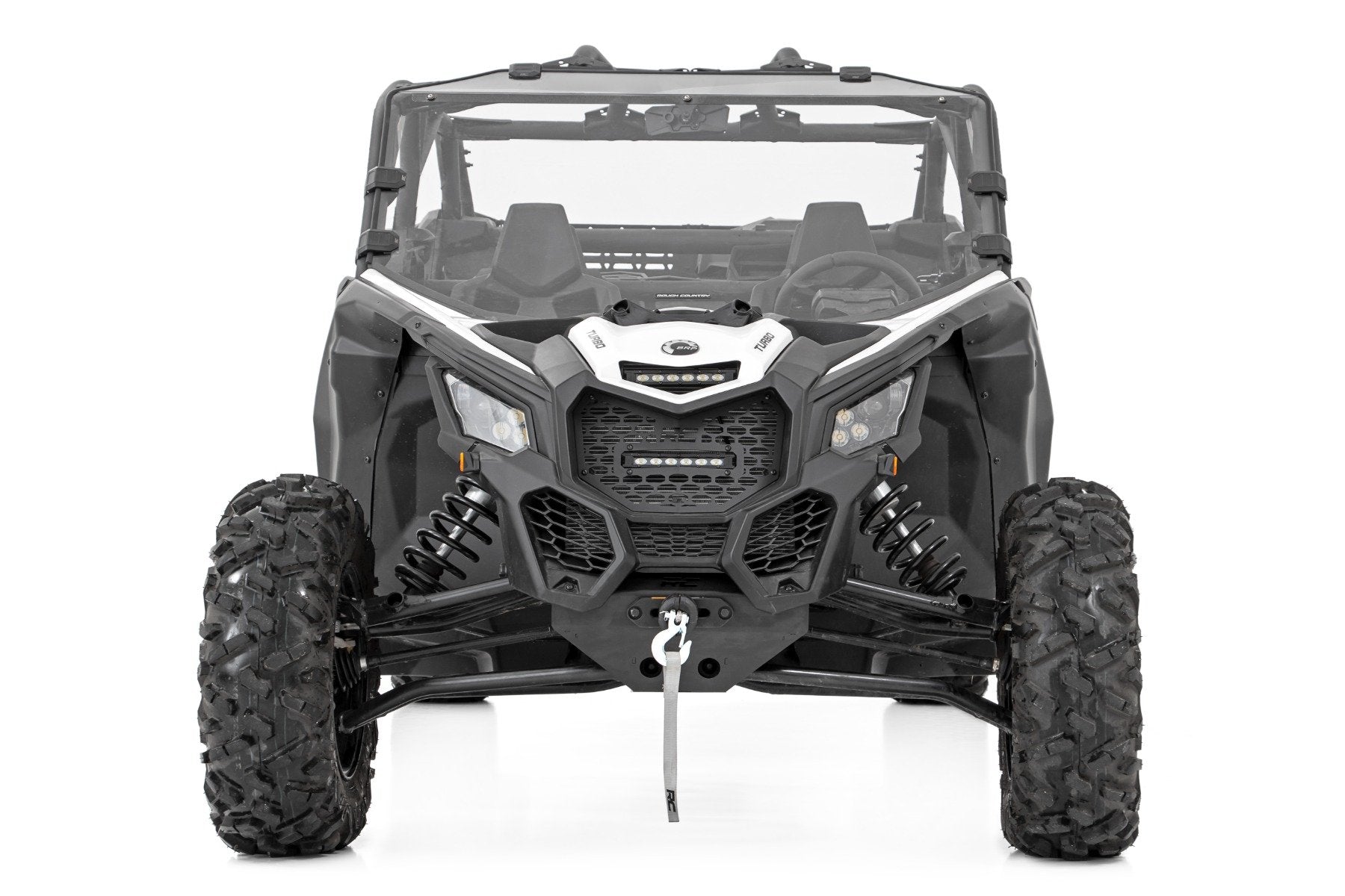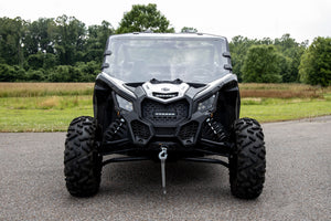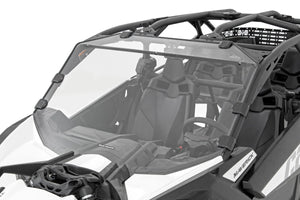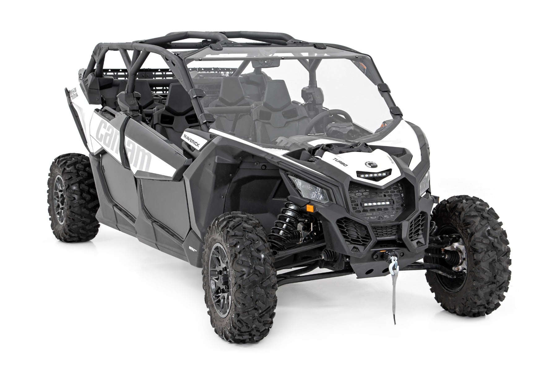 Added Protection and comfortability. Protect the occupants of your Can-Am Maverick X3 from off-road hazards such as rocks, branches, and other debris with Rough Country's Scratch-Resistant Windshields. UTV Windshields offer a clear visual of the trail ahead and allow for a much more comfortable outing!\High-Quality Polycarbonate Construction. Rough Country UTV windshields are constructed from thick polycarbonate material that is precision cut for a perfect fit.  The polycarbonate material provides an ideal combination of clarity, flexibility, durability that outperforms glass, acrylic, and other windshield materials. \Durable Scratch and UV Resistance. Each windshield is not only constructed from thick polycarbonate material but enhanced by a secondary AR2 hard-coating process.  This process completely coats the windshield with a hardened, scratch-resistant barrier.  This treatment also provides the additional benefit of UV protection.\Easy Installation. With a simple strap-on installation process, installing a Rough Country windshield couldn't be easier.  Within 15 – 30 mins you can be ready to hit the trails.  \Limited-Lifetime Replacement Warranty. Rough Country's Scratch-Resistant Windshields are backed with a limited lifetime replacement warranty towards manufacturer defects. As such, the product is protected from structural and workmanship damage after the date of purchase. With our industry-leading warranty give yourself peace of mind when using Rough Country's Suspension products!
