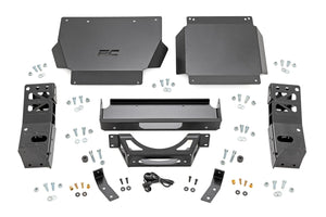 Conquer any challenge on the trail with the all-new fourth-generation Tacoma Hidden Winch by Rough Country. Our winch mount is meticulously engineered to provide discreet integration, maximum strength, and superior undercarriage protection.Stealthy Power: This hidden winch kit has a flat black powder coat finish and is designed specifically for Rough CountryΓÇÖs Pro9500s and Pro12000S winches. It offers muscle without messing up your truck's sleek look.Heavy-Duty Construction: Crafted from high-strength 7-gauge steel for the winch tray and mounts and 11-gauge steel skid plates, this winch mount is built to withstand even the most demanding off-road conditions.Extra Armor: The included differential skid plate adds another layer of protection to your vulnerable undercarriage components, giving you peace of mind when navigating rocky terrain.Easy Install: Get back on the trails faster with the straightforward bolt-on design.The 4th gen Tacoma Hidden Winch by Rough Country isn't just an upgrade ΓÇô it's a game-changer. Whether you're tackling rugged trails or simply need that extra edge, this winch mount has got you covered.