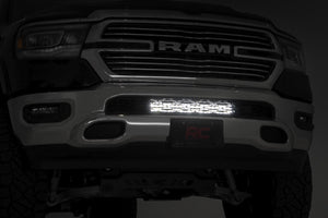 COMMAND THE DARK: Add LED illumination to the front of your 2019 RAM 1500 with Rough CountryΓÇÖs 20in Hidden Bumper LED. This sleek, discreet lighting system blends in seamlessly with the front-end design, hidden behind the mesh grille on the factory front bumper.This powerful LED application provides 120 watts of forward-facing illumination in a convenient 8 degree spot / 90 degree flood combo pattern for maximum viewability. Each Rough Country LED light features an IP67 waterproof rated durable diecast aluminum housing for a long lifespan or great performance. Each light features a premium wiring harness with in-line fuse for easy operation.Choose from Rough CountryΓÇÖs Black Series and DRL Series Light Bars.