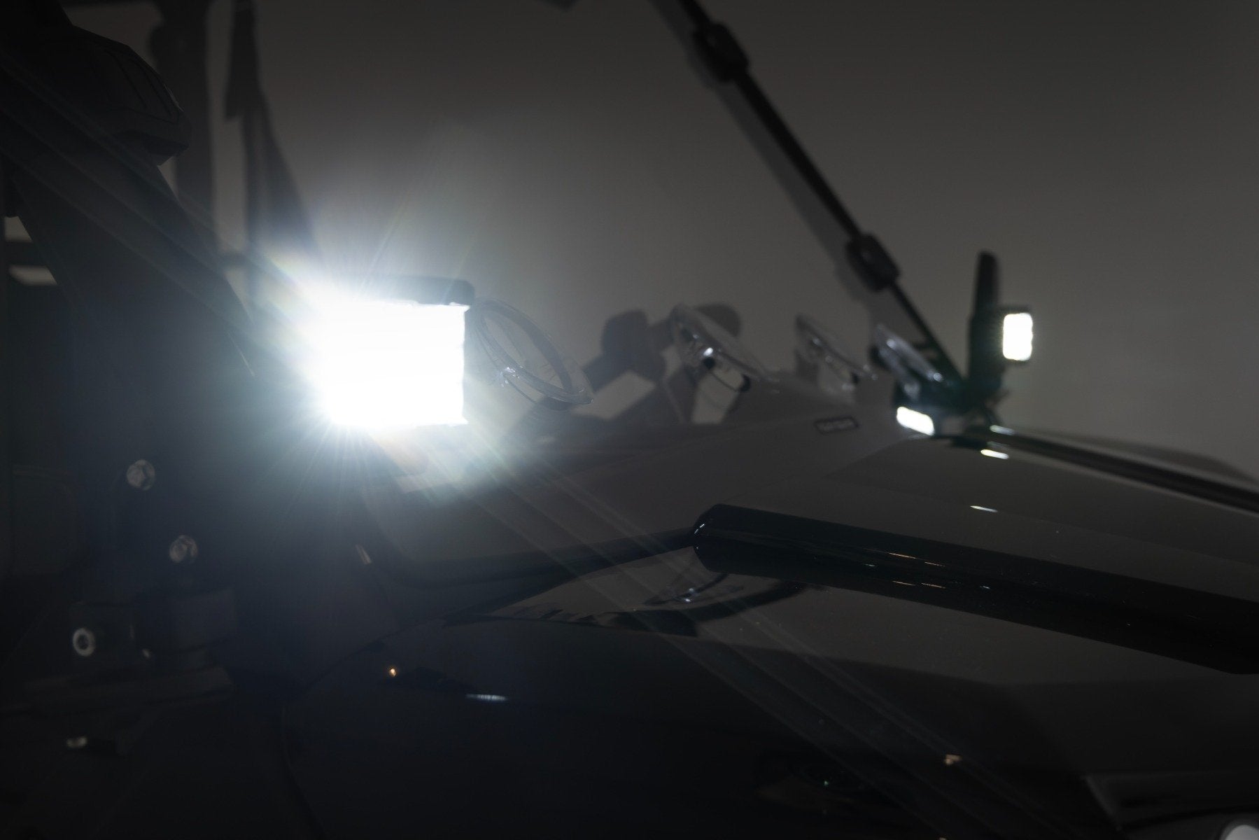 Go the extra mile in your UTV, no matter the lighting conditions with Rough CountryΓÇÖs CF-Moto UForce Cube Lights. This LED cube light kit can be set up and easily adjusted to match your needs in darkness and low visibility.\Rough CountryΓÇÖs LED kit is easy to install, it features a 100% bolt on installation process that mounts to the bottom of the roll cage for a quick and painless upgrade. There are several LED options to choose from, the standard 2-inch black-series LEDs with or without daytime running light function, or, our popular 3-inch Wide Angle Osram LED cube.\Rough Country LED light cubes are IP67 Waterproof and includes a premium, braided wiring harness with in-line fuse and on/off switch. Each mount features a positionable base that lets you choose the exact angle you prefer for illumination when you need it most. Get the look and function for your UTV where it counts, on and off the trail.