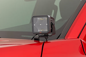 Light the Way! Get the ultimate in truck lighting and safety with Rough Country's Ditch Mount LED Lights. These high-performance Ditch Mounts are specifically designed for your fourth-generation Toyota Tacoma to add extra side lighting for increased visibility in the dark. With multi-angle capability, you can move them in the direction you want. Our low-profile design means they will not affect the opening or closing of the hood or block your windshield wipers. So, you can hit the trails in style with superior nighttime illumination.\Durable Protection. These Tacoma Ditch Mount LED lights were designed to withstand the harsh outdoor elements while providing you with clear visibility. Constructed with a 7-gauge material for improved strength and reduced vibration that can occur on bumpy roads, this light boasts a durable black finish powder coating against corrosion. With an IP67 waterproof rating, they are great for any vehicle, whether on or off-road!\Installation and Warranty. The Rough Country Tacoma Ditch Mount LED Light Bars are the perfect combination of performance and style, offering a high-quality lighting solution without taking up valuable space on the front of your vehicle. This kit includes a complete set of mounting brackets and hardware, with vehicle-specific hood hinge brackets to ensure an easy and perfect fit on your Tacoma. This product features our Limited Lifetime Warranty, so you can rest assured knowing you're covered.