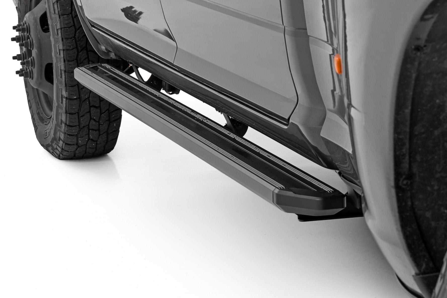 Revolutionize the way you step into your truck with Rough Country's Bluetooth-Controlled Running Boards! Designed for those who demand both cutting-edge technology and rugged durability, these premium running boards combine wireless convenience, customizable LED lighting, and rock-solid construction into one sleek package. Whether you're looking for enhanced accessibility, extra protection, or a bold new look, these running boards deliver the perfect blend of functionality and style-all at the touch of a button.