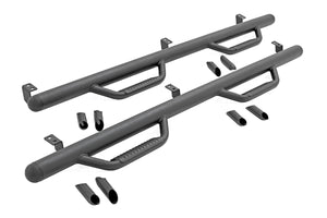 Rough Country's new Wheel to Wheel Nerf Steps provide unrelenting style and easier access to your truck. These steps extend from one wheel well opening to the next, offering a clean install that lends to the look of your lifted truck. These steps can be installed on any vehicle, with or without a body lift. Our innovative design actually hides any exposed frame you see under the truck, offering extra protection for your rocker panels. Rough Country Nerf Steps are Made out of ultra-durable .084 Wall corrosion resistant tubing with a Zinc Base Coat and Black Finish for a sharp look that's ready to withstand the elements. Rough Country Steps include a Lifetime Replacement Warranty!