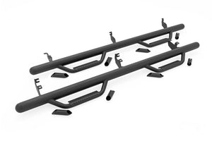 Rough Country's new Cab Length Nerf Steps provide unrelenting style and easier access to your truck. These steps extend from one wheel well opening to the next, offering a clean install that lends to the look of your lifted truck. These steps can be installed on any vehicle, with or without a body lift. Our innovative design actually hides any exposed frame you see under the truck, offering extra protection for your rocker panels. Rough Country Nerf Steps are Made out of ultra-durable .084 Wall corrosion resistant tubing with a Zinc Base Coat and Black Finish for a sharp look that's ready to withstand the elements. Rough Country Steps include a Lifetime Replacement Warranty!