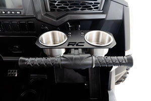 Innovative Upgrade. Fed up with drink spills while taking your Polaris Rzr off-road? Rough Country's Dual Cup Holder is the perfect solution. It attaches easily to the passenger grip handle, accommodating both cans and larger bottles. Crafted from durable 11ga steel with a tough powder coat finish, it's designed to withstand any rugged trail. With an easy, bolt-on installation you’ll be back to the trails in no time, all while your drinks stay right where they belong.\Limited Lifetime Replacement Warranty. Rough Country's Dual Cup Holder is backed with a limited lifetime replacement warranty towards manufacturer defects. As such, the product is protected from structural and workmanship damage after the date of purchase. With our industry-leading warranty give yourself peace of mind when using Rough Country's Suspension products!