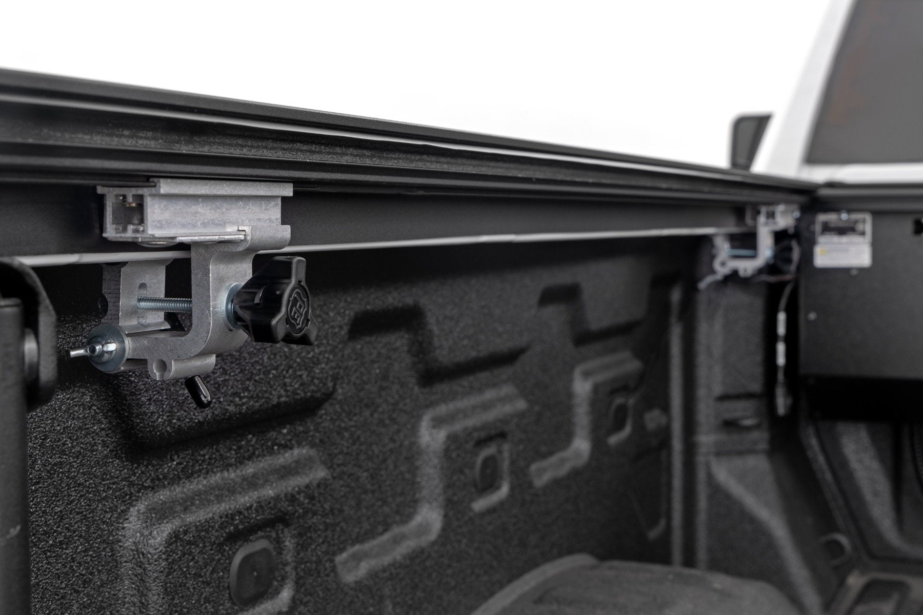 Every truck owner knows the importance of securing and protecting their gear, especially when they're out conquering trails or venturing into the wild. With the Powered Retractable Bed Cover for the fourth-generation Chevy/GMC 2500/3500 HD, you not only protect your equipment from unpredictable weather but also add an unmatched layer of security and style to your truck. Engineered with precision in mind, our bed cover has been crafted to serve you whether you're on smooth highways or rough trails.Lock Your Cover in Any Position: With its unique electromagnetic brake, you can lock the cover at any point along the rails, offering flexibility based on your storage needs.Nearly Full Bed Access: Maximizing your truckΓÇÖs storage potential, the cover smoothly retracts to provide almost complete bed access.Heavy-Duty Aluminum Construction: Built to last, this bed cover is crafted from rugged aluminum and has a Matte black finish, ensuring it stands up to both daily wear and more intense outdoor challenges.UV Protection: The bed cover comes with UV protection, ensuring that it doesnΓÇÖt fade over time, keeping it looking as pristine as the day you installed it.Remote Key Fob for Easy Entry: Access your truck bed with just a click! The remote key fob integration ensures you can quickly and easily open or close your bed cover, even from a distance.Rough CountryΓÇÖs Powered Retractable Bed Cover gives you the confidence of knowing your truck's looking its best and your gear's under wraps.