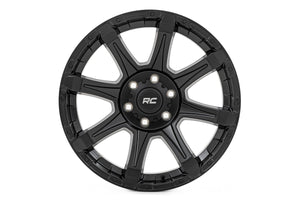 Transform your vehicle into a standout with the Rough Country 81 Series Wheel. This wheel combines high performance with captivating style, making it a must-have for any off-road vehicle that craves attention.Semi Gloss Black Finish: The eye-catching 8-spoke design in a semi gloss black finish ensures your vehicle looks stunning whether you're on the trail or the highway.Accent Bolts on the Outer Lip: Emphasize your vehicleΓÇÖs ruggedness and add a fierce, aggressive look to your wheels. This design demands attention.Single-Piece Aluminum Construction: Crafted from high-strength aluminum, these wheels are engineered to withstand the toughest terrains, ensuring you have a reliable companion on your off-road adventures.Rough Country Black Center Cap: The stylish black center cap finishes off the look, ensuring your wheels are as cohesive as they are striking.Warranty: Drive with confidence knowing your investment is protected by a 1-year finish warranty and a Limited Lifetime Structural Warranty.For the off-road enthusiast who wants to combine rugged capability with standout style, the Rough Country 81 Series Wheel is the ultimate choice. Hit the trails with confidence and make a statement wherever you go.